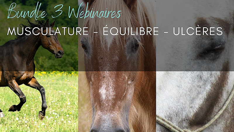 Découvre 3 webinaires essentiels sur la santé du cheval : musculature, équilibre et ulcères. Un forfait complet pour mieux comprendre et prendre soin de ton cheval.